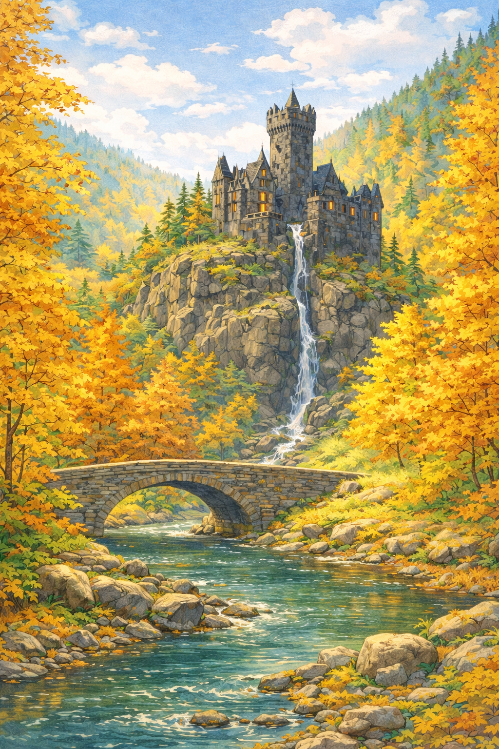 Über ihnen klaffte ein gewaltiger Krater in der Decke, durch den der Himmel sichtbar war. Dunkle, graue und düstere Wolken jagten darüber hinweg – und aus einer Felskluft am oberen Rand stürzte mit gewaltigem Tosen ein gigantischer Wasserfall in die Tiefe. Die Wassermassen zerschlugen auf einer steinernen Plattform in der Tiefe, wirbelten in Gischt und Dampf empor, und verschwanden dann in einem weiteren Schacht, der sich dem Blick entzog. Das Donnern des Wasserfalls vermischte sich mit dem Dröhnen der Maschinen, dem Brüllen der Öfen und dem Rufen der Zwerge zu einem urgewaltigen Klangteppich, der die ganze Halle durchdrang.